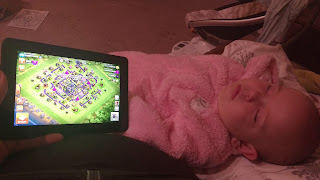 I play some Clash of Clans. War is about to end so I need to get in my final attacks. Hazel wakes up and is still acting fussy and hungry so I get ready for bed and put her in more appropriate pajamas. Eric handles Kaylee. I'm pretty much in bed for the rest of the night and entertain myself with Hulu and Netflix. I'm watching early ANTM on Hulu and Criminal Minds on Netflix.